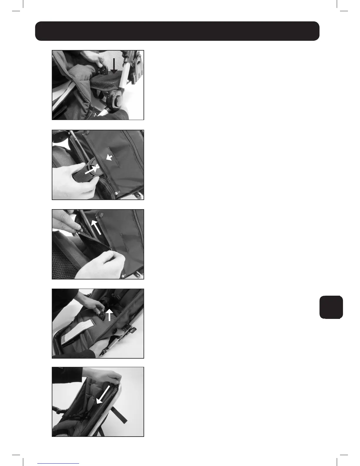 • Izvelciet kājstarpes siksnu caur sēdekļa auduma apvalku.
