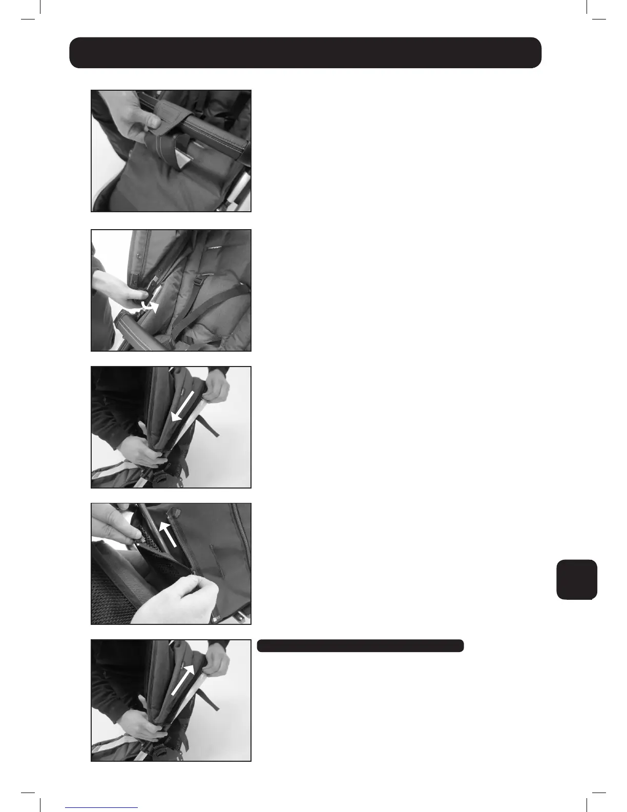 • Apsukite sėdynę ir įsitikinkite, kad užtrauktukas užtrauktas ap-