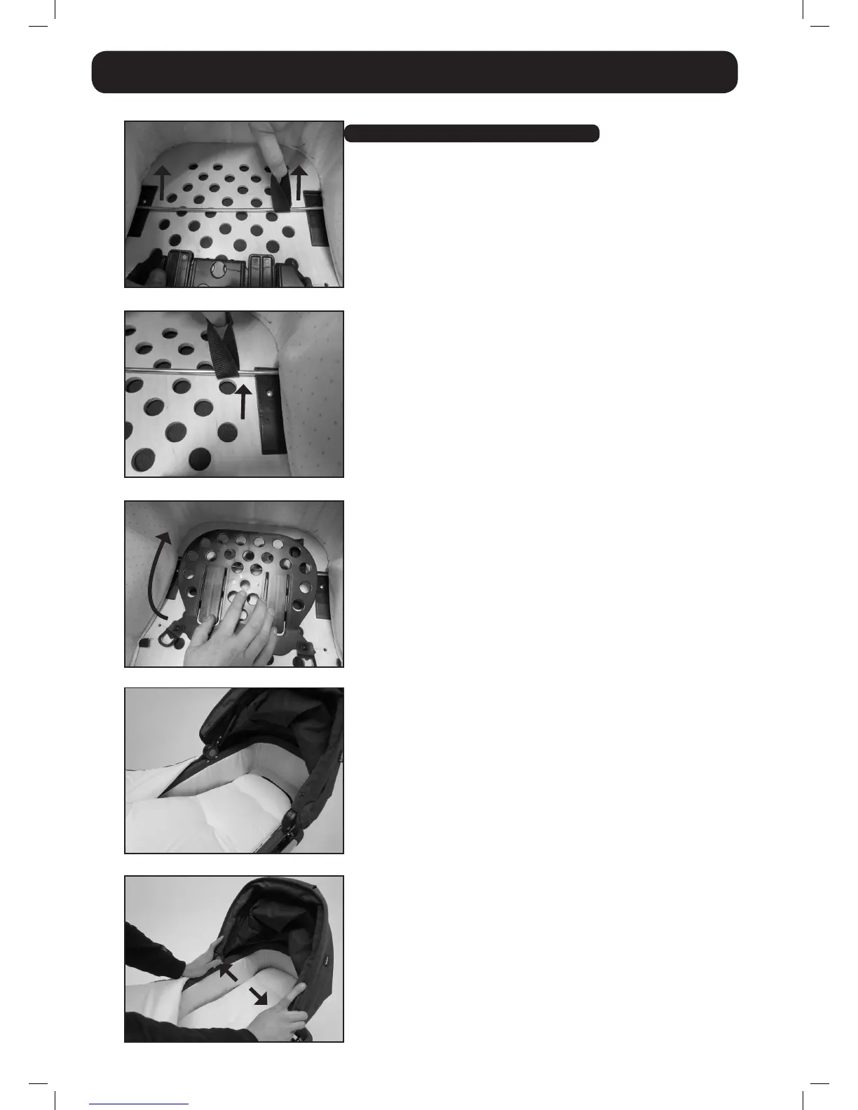 • Pakartokite šiuos veiksmus kitoje nešiojamojo lopšio pusėje.