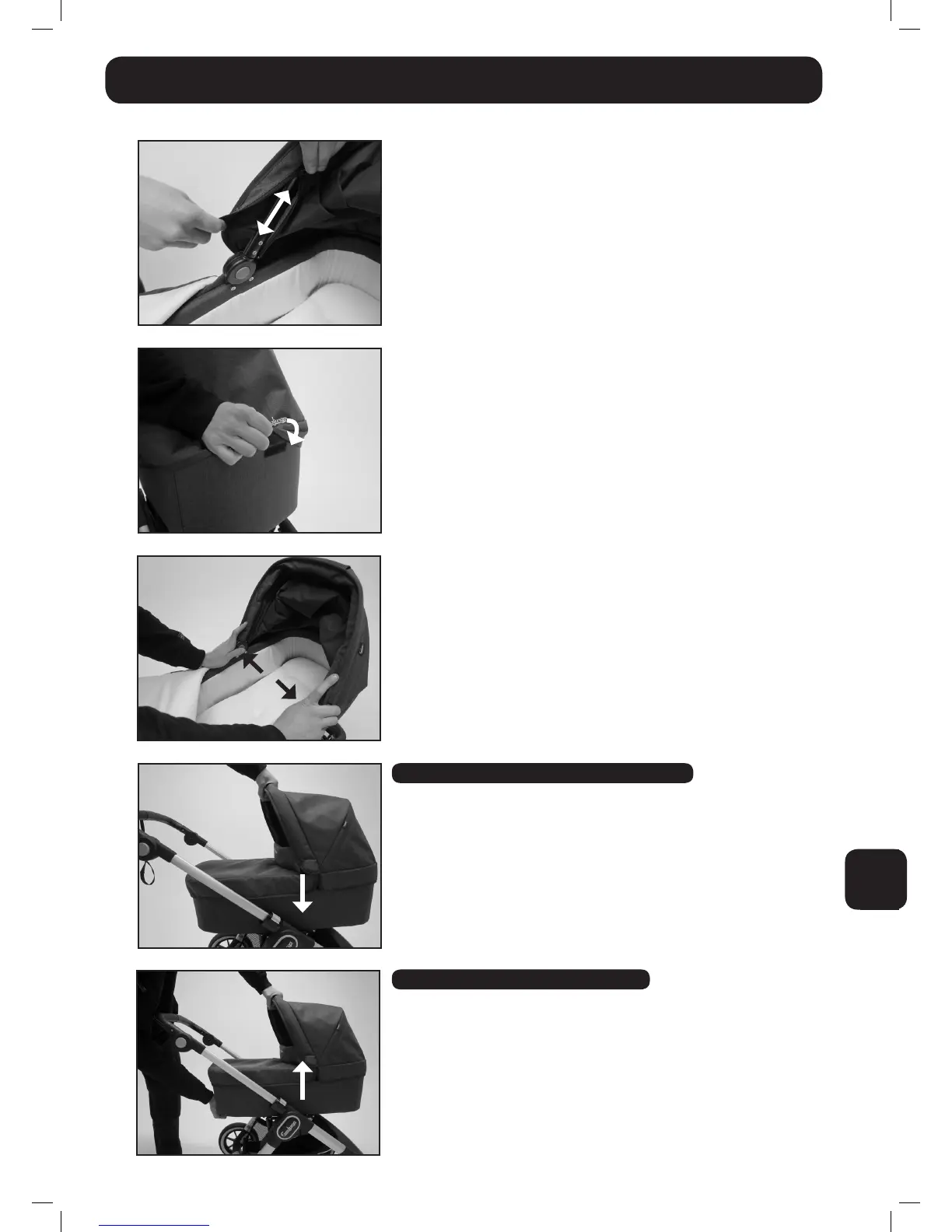 • Įjunkite stabdį. Pakelkite nešiojamąjį lopšį už rankenos ir