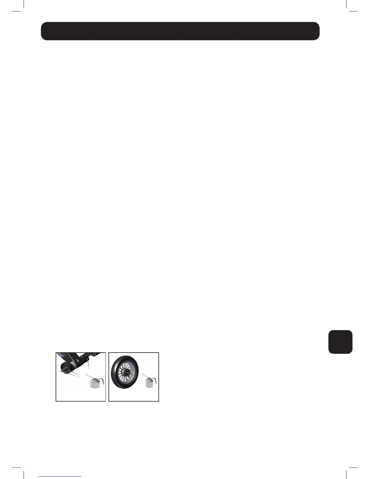• Reguliariai valykite važiuoklę ir metalines vežimėlio dalis, nudžiovinkite ir sutepkite visas jungtis. Dažnai