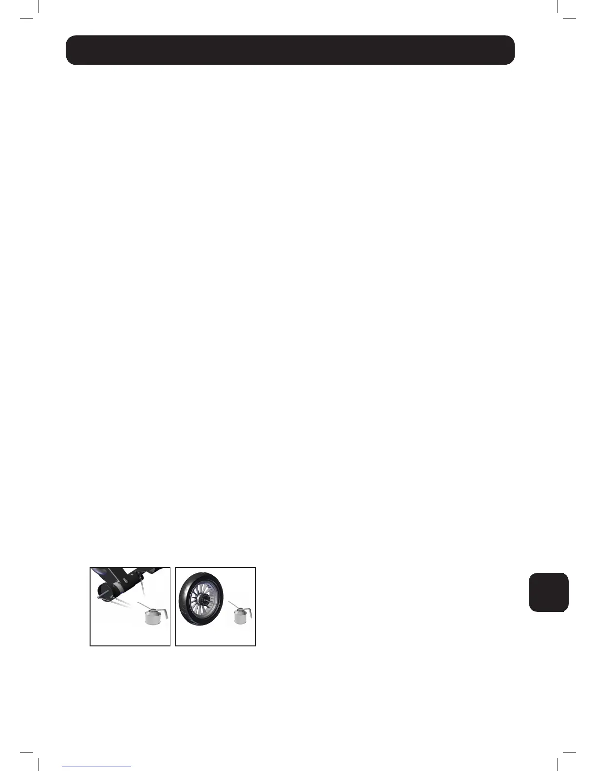 • Regularnie czyścić stelaż i metalowe części wózka, po czym wytrzeć do sucha i nasmarować wszyst-