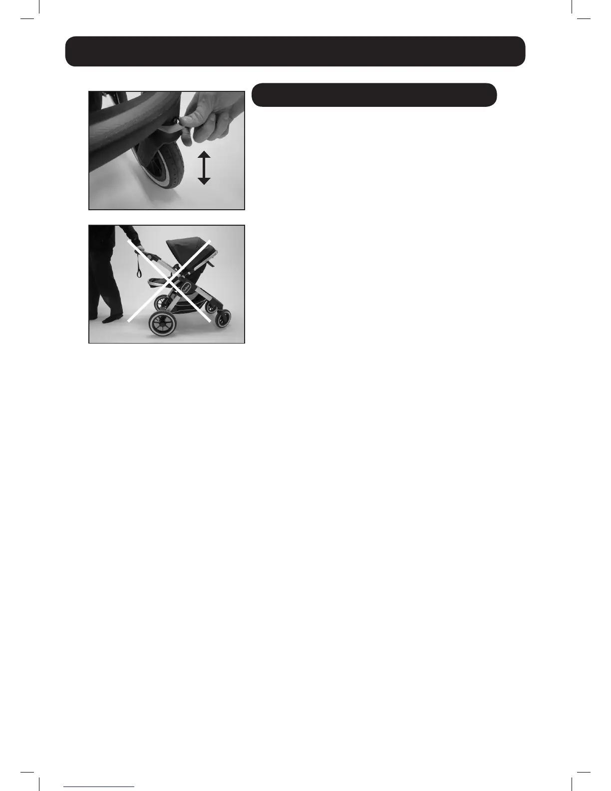 • Kočárek nikdy netahejte s nezaaretovanými kolečky. Kočárek