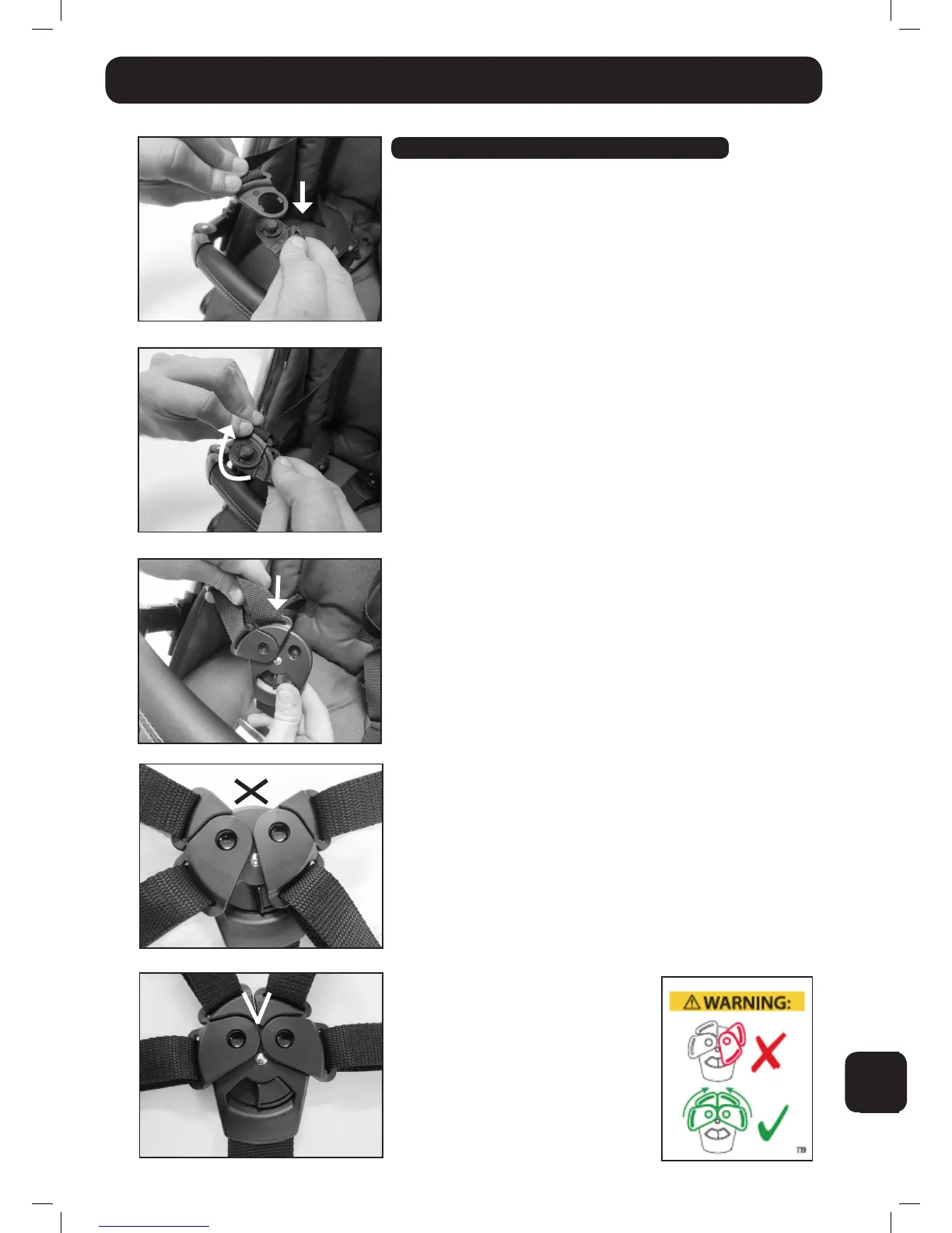 • Abroche la tira lateral a la hebilla del tirante del arnés (ver foto).