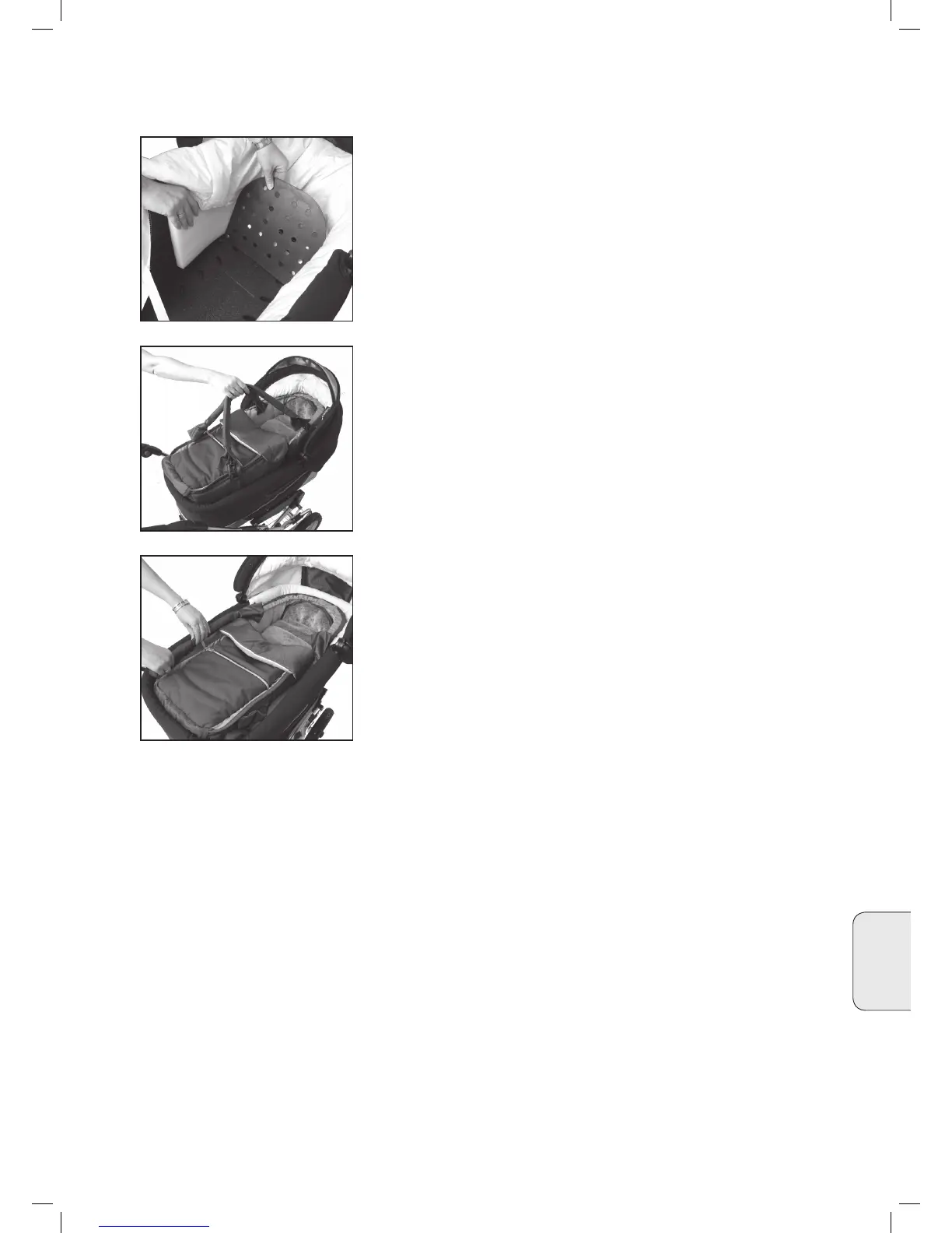 • Положите люльку-переноску/кокон-конверт в коляску....