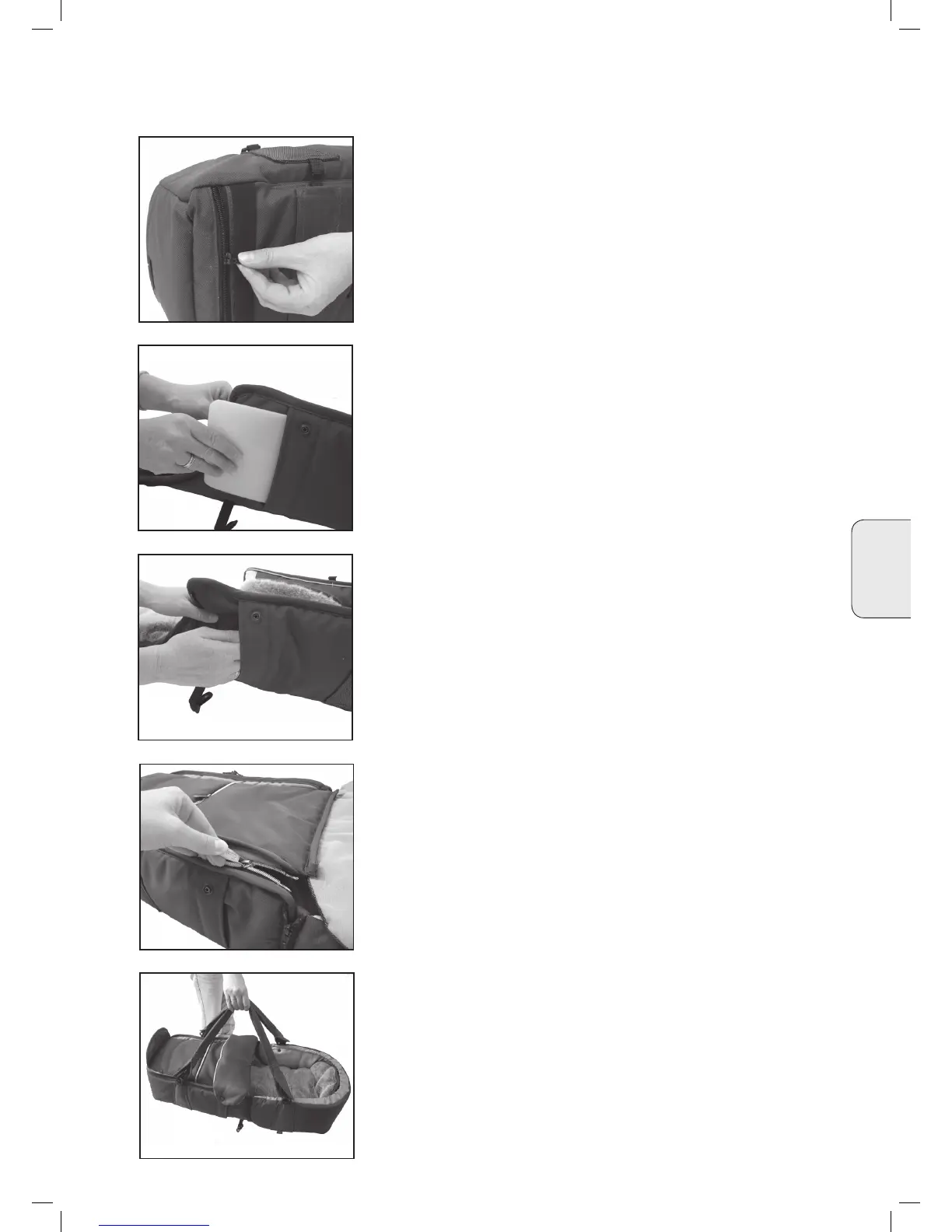 • Kājgalī ievietojiet plastmasas plāksni auduma tunelī.