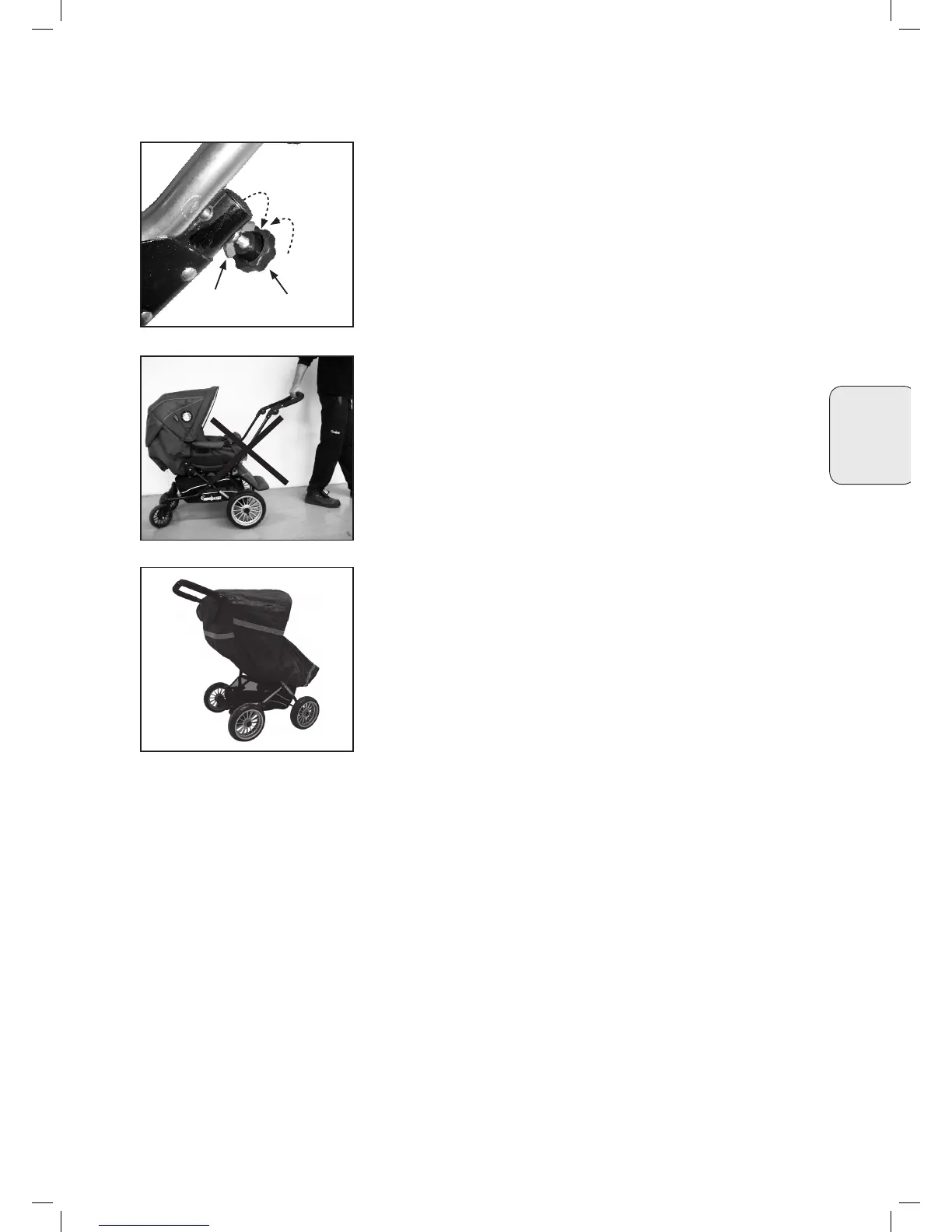 • Regnskyddet monteras genom att du drar regnskyddet med den