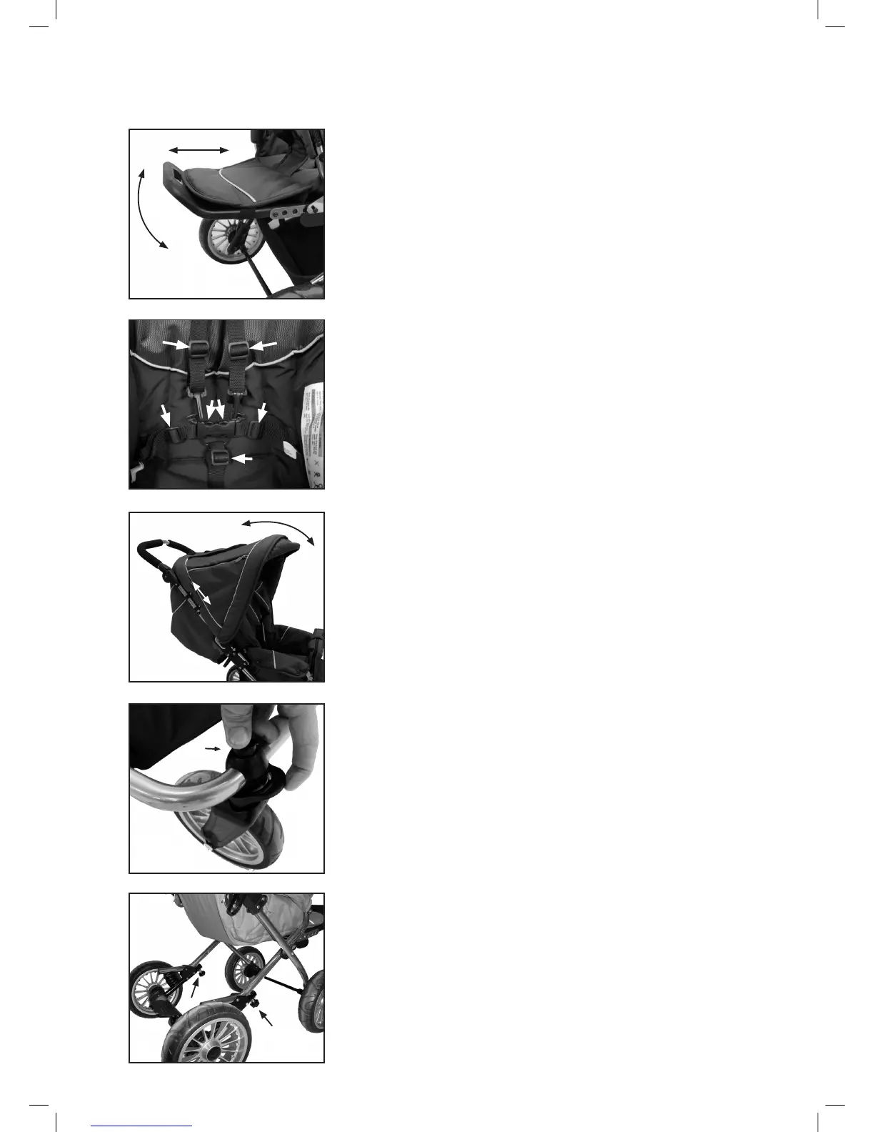 • Um Schulter- und Hüftgurte zu lösen, drücken Sie auf die Knöpfe