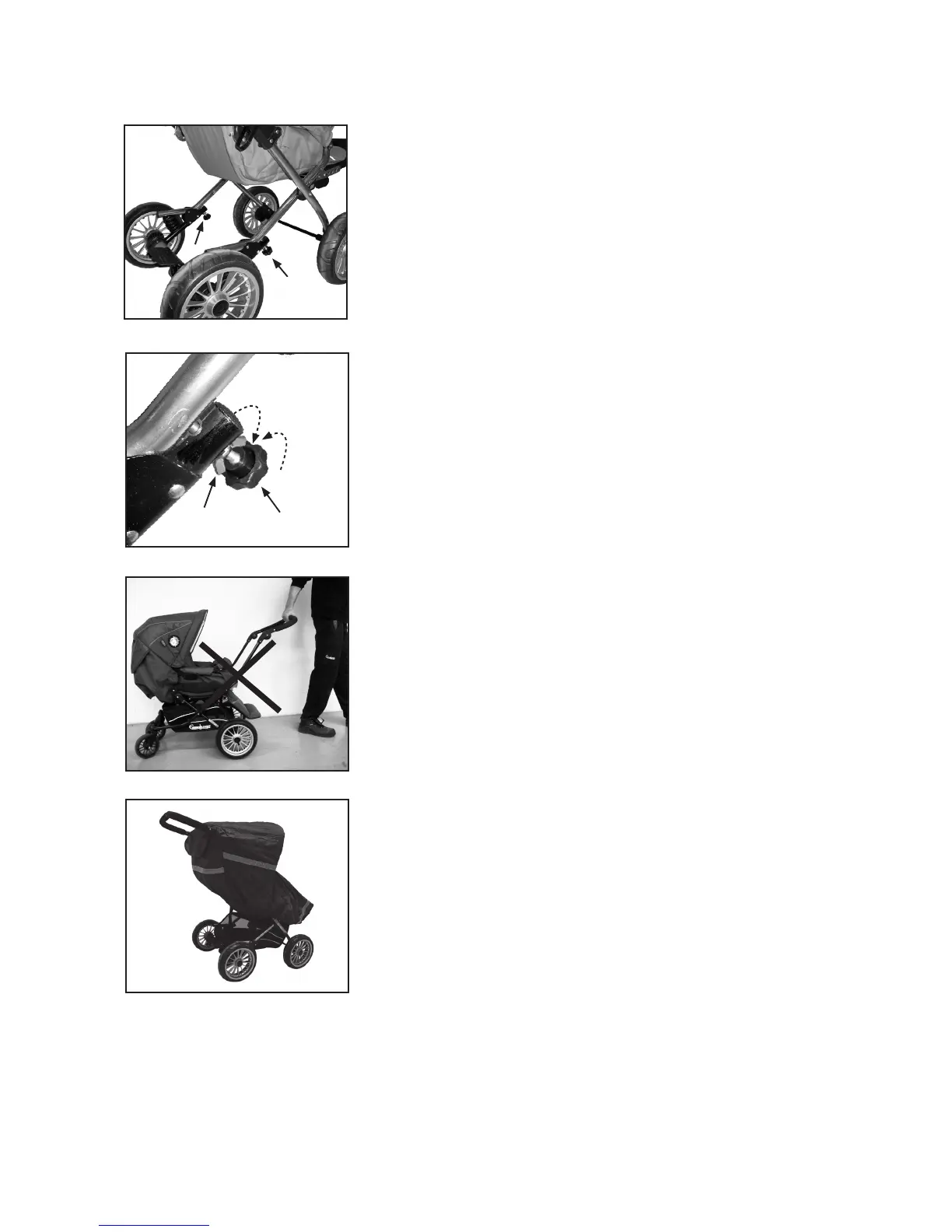 • Trekk aldri en vogn med svingbare framhjul etter deg. Hvis du ikke