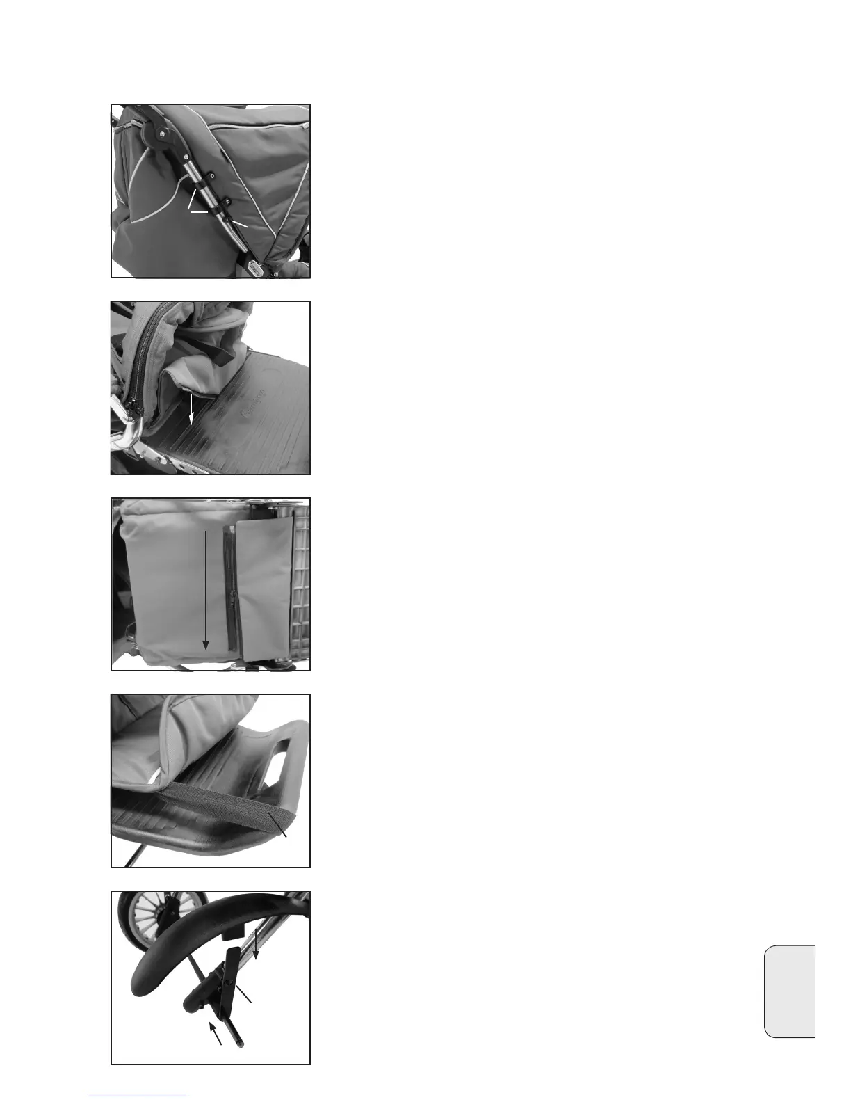 • Pujota vetoketjulla varustettu kangaskaistale jalkatuen raosta (20).