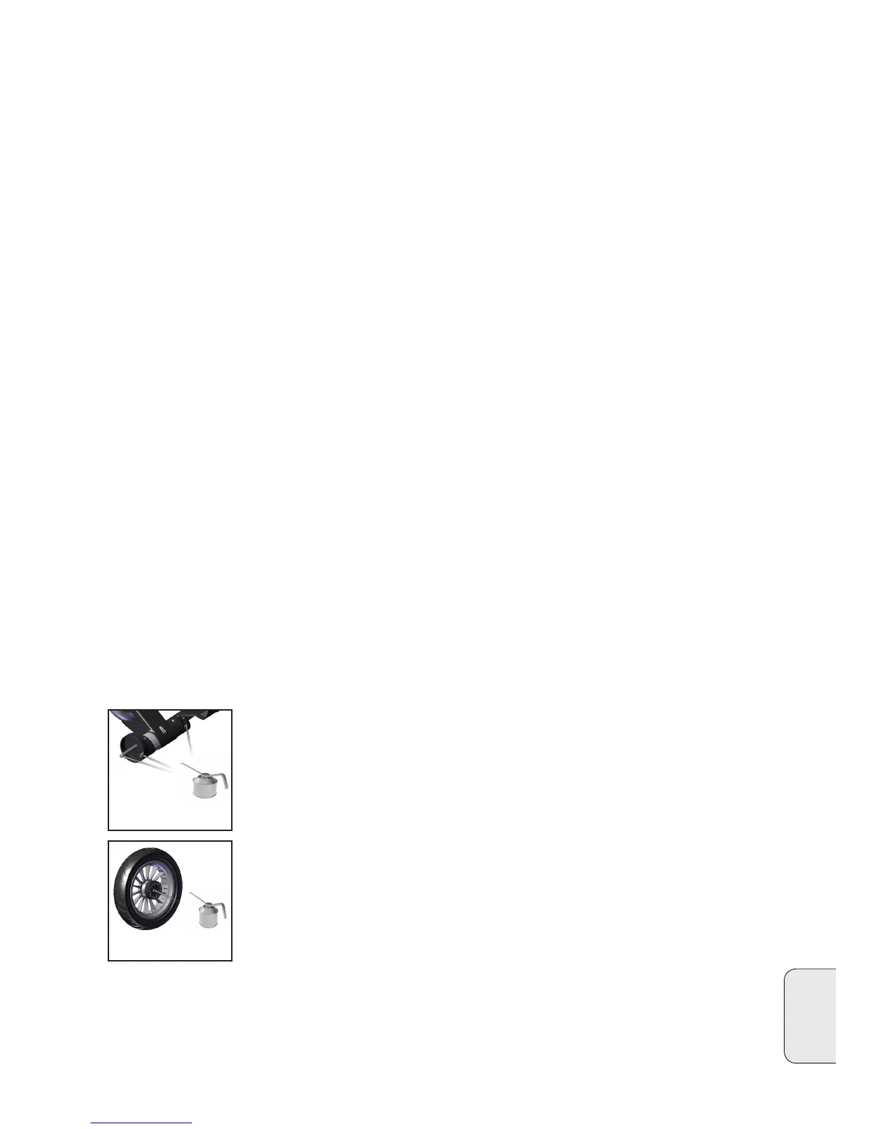 • Voitele vähintään kerran kuukaudessa jarrupoljin, renkaiden akselit, renkaiden luk-