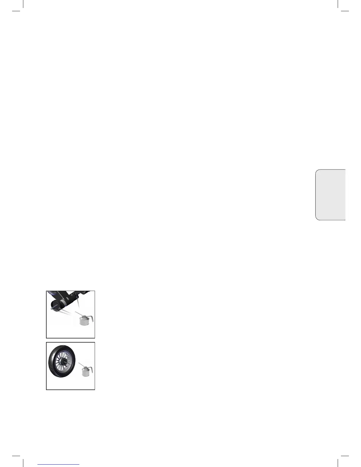 • Use a silicon or oil based lubricant to lubricate the brake pedal, wheel axle and