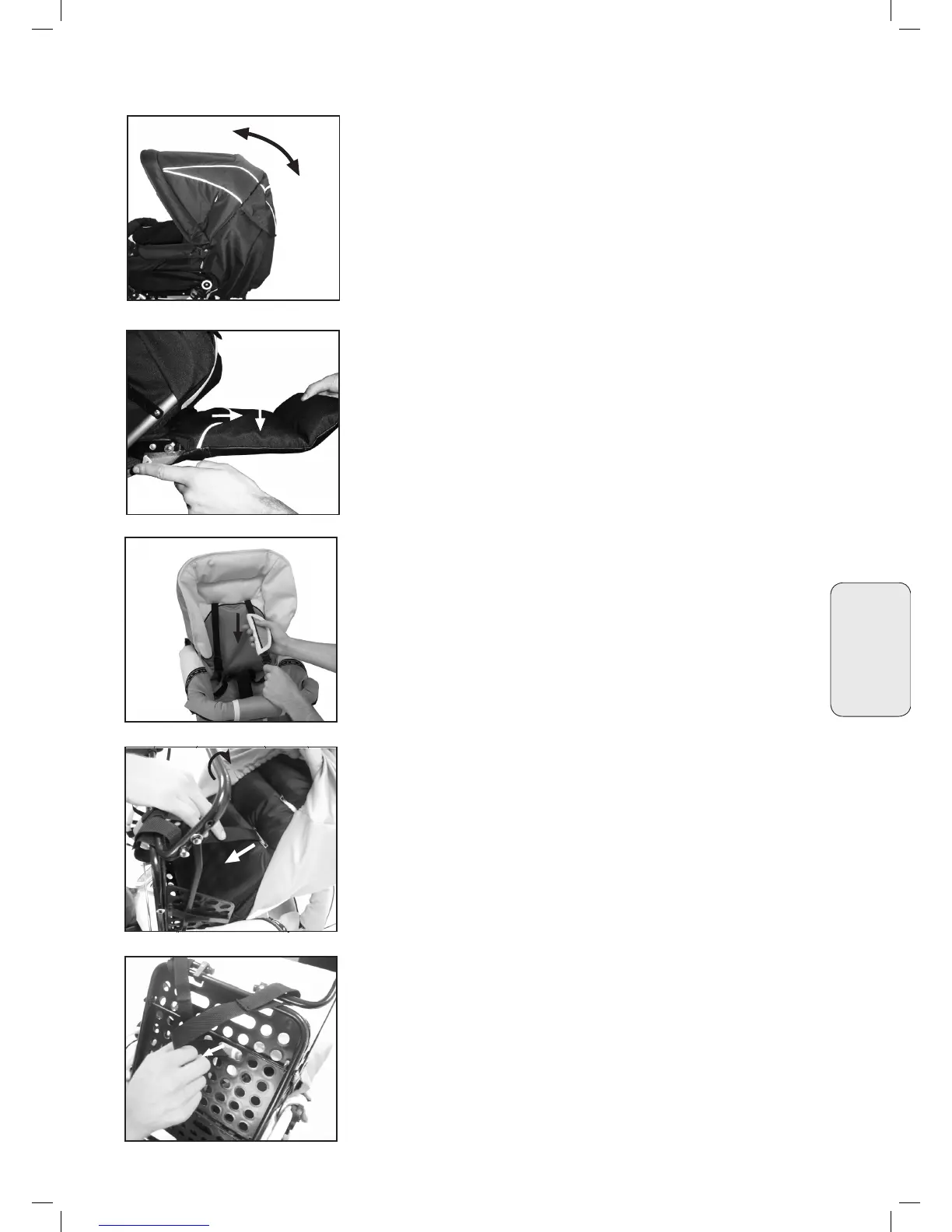 Fußablage gezogen werden und mit den Plastikhaken befestigt werden.