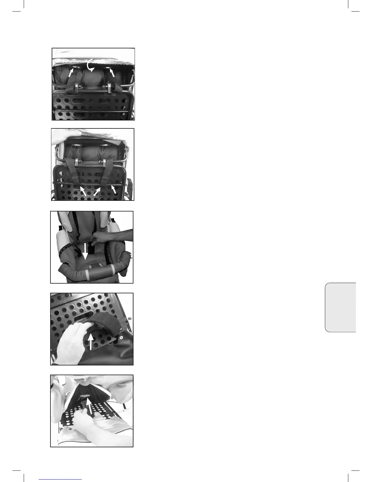 • Kontroller at skidtstroppen går igennem plastbunden, fodstøttestoffet og