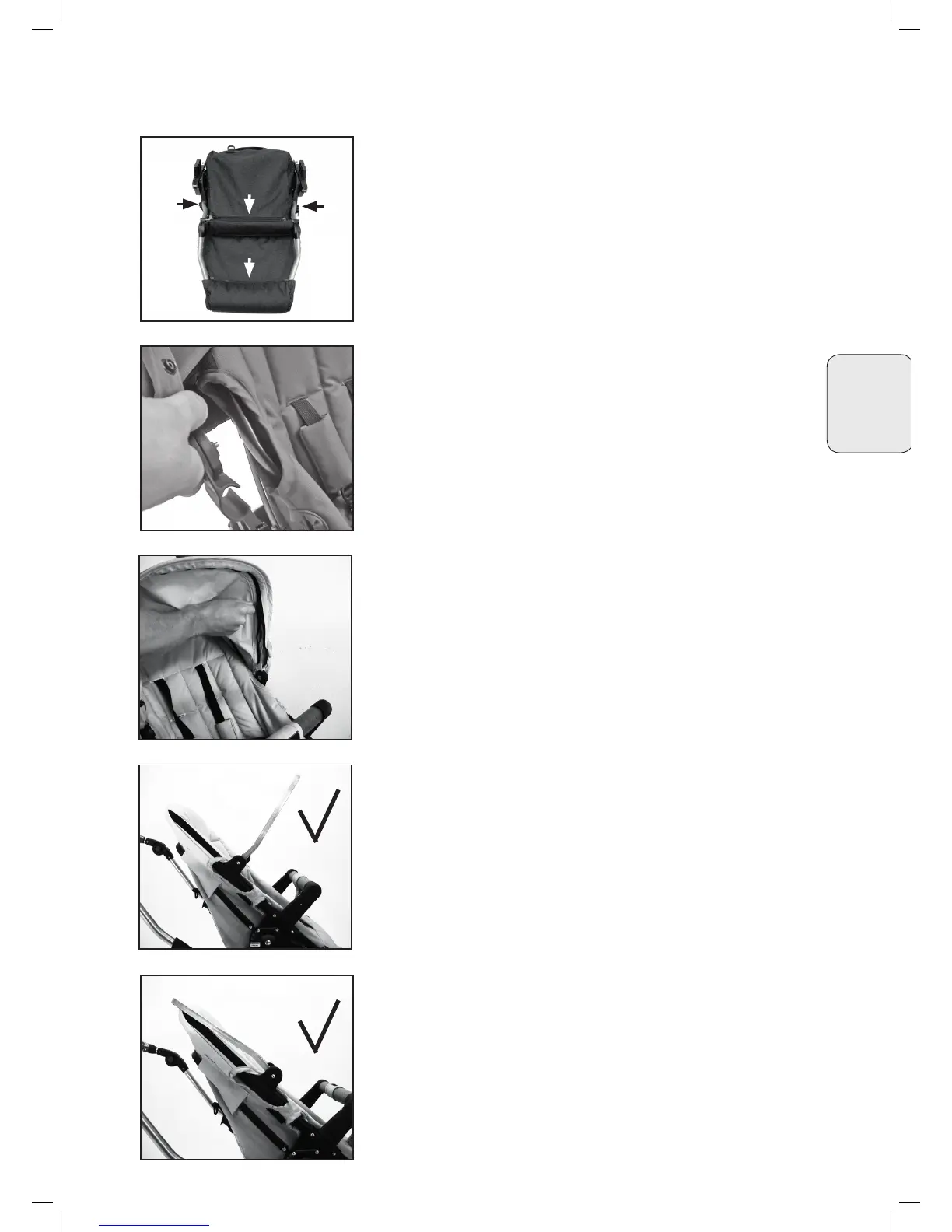 • Kontrollera att alla dragkedjor är fastsatta, totalt 5 st.