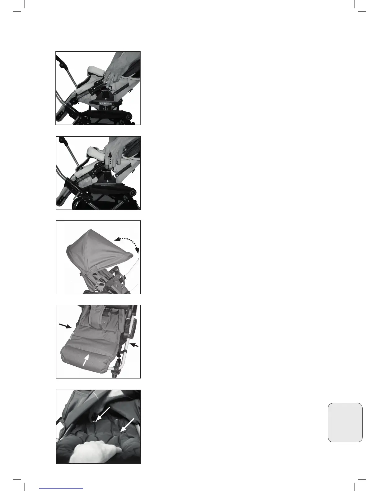 • Madla držte pevně, dokud nebude sedačka sporťáku na svém místě.