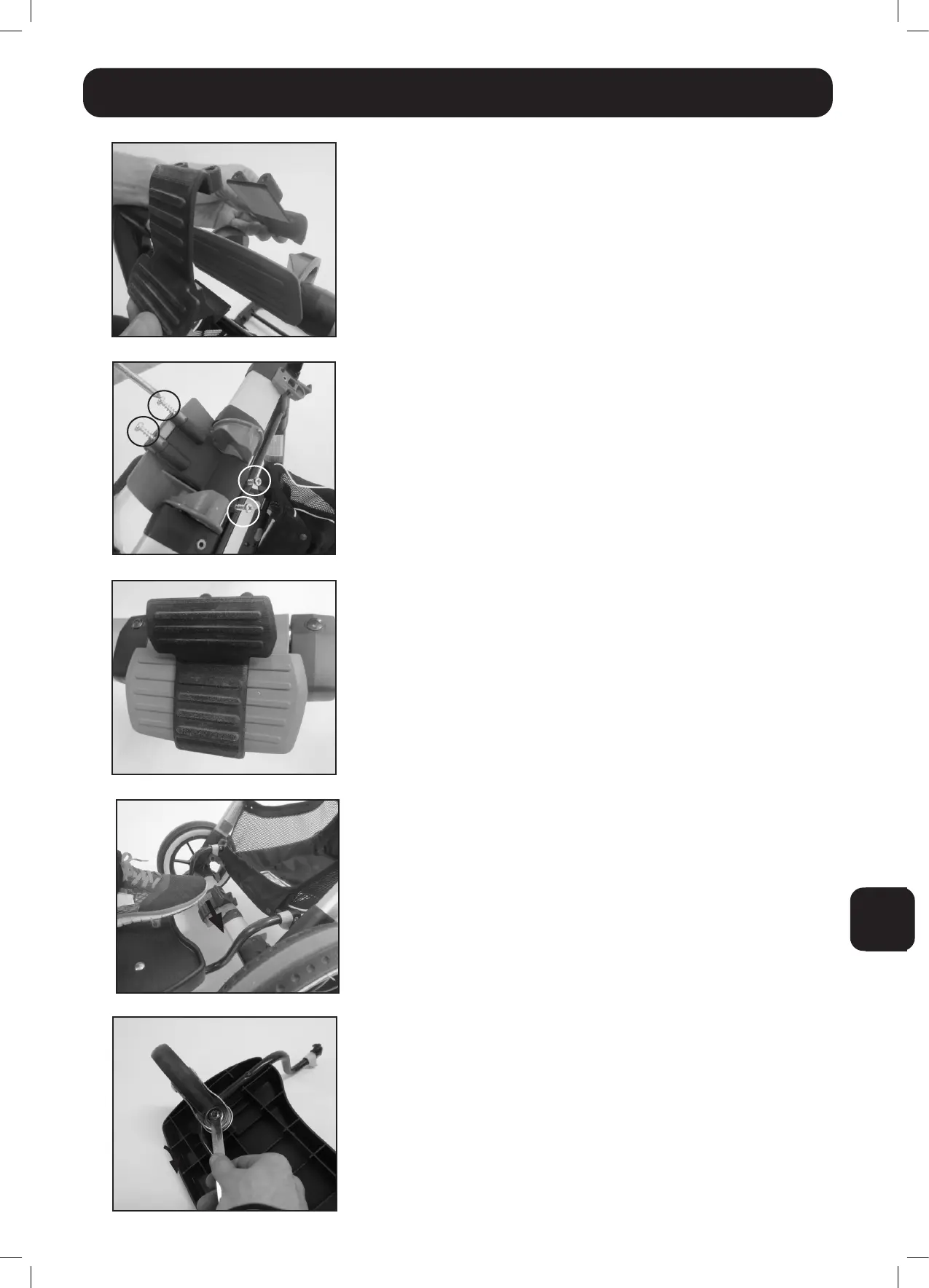 • Place the toddler roller pedal and the pedal bracket around the
