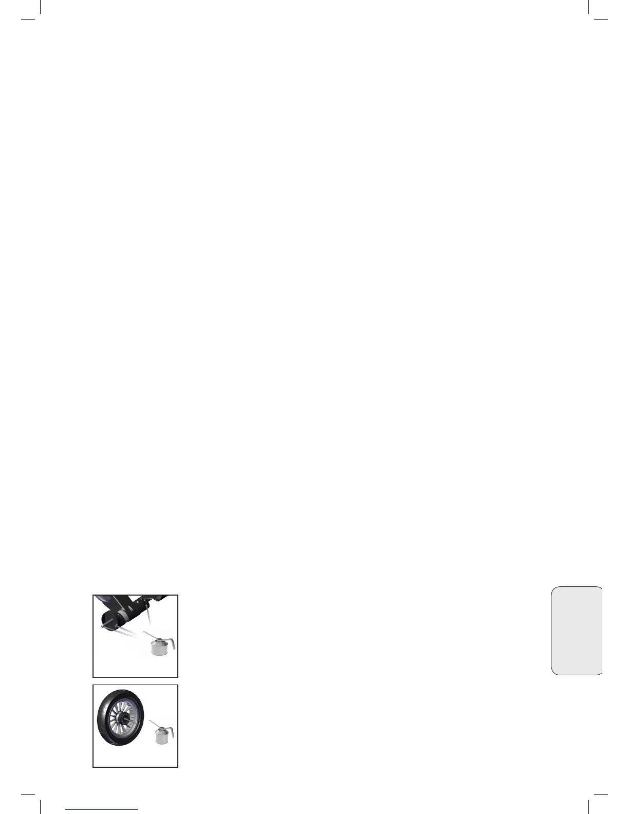 • Use a silicon or oil based lubricant to lubricate the brake pedal, wheel axle and
