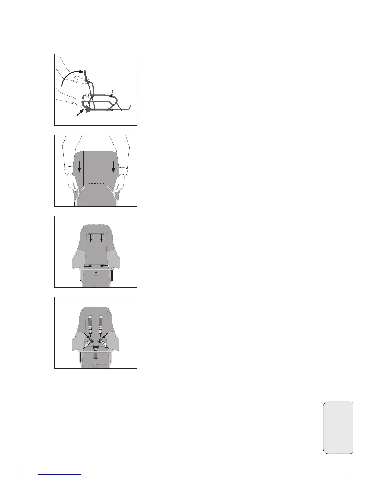 • Pujota vyötäröhihnat (5) verhoilun istuinosan reikien läpi.