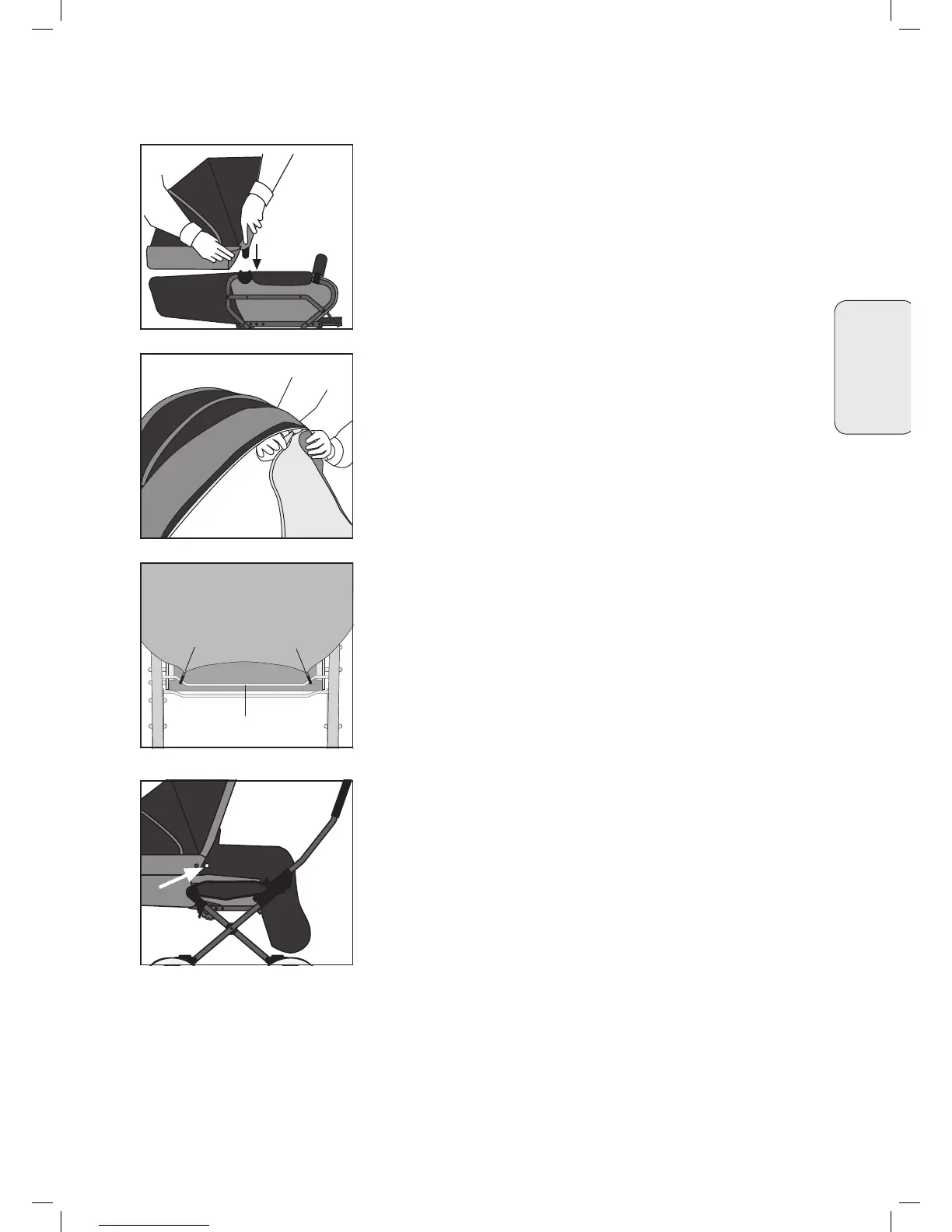 sufetten och ligg- eller sittdelen. Observera att regnskyddet är öp-