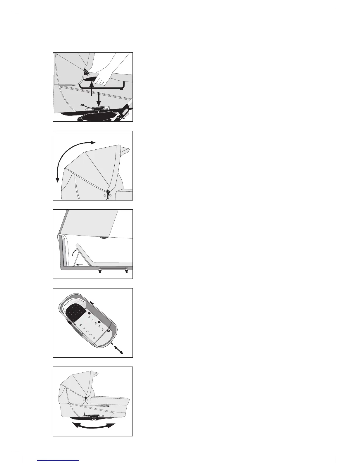 • Overdelen kan bruges som vugge (6) indendørs på et lige og plant