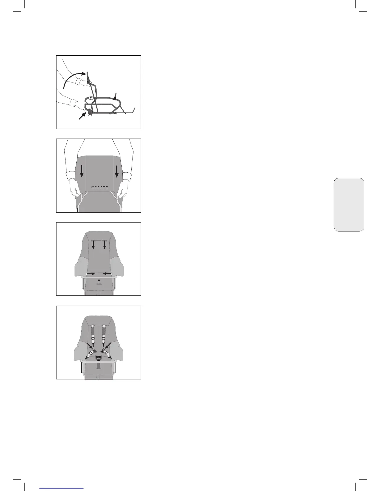 • Lås 5-punktsselen op og træk betrækket ned over ryglænet (3).