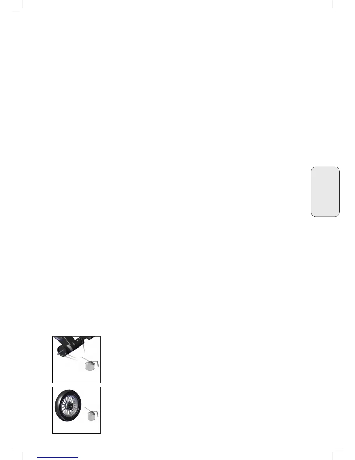 • Rengør regelmæssigt stel og vognens metaldele – aftør dem og smør alle led og nitter. Stel, fælge og