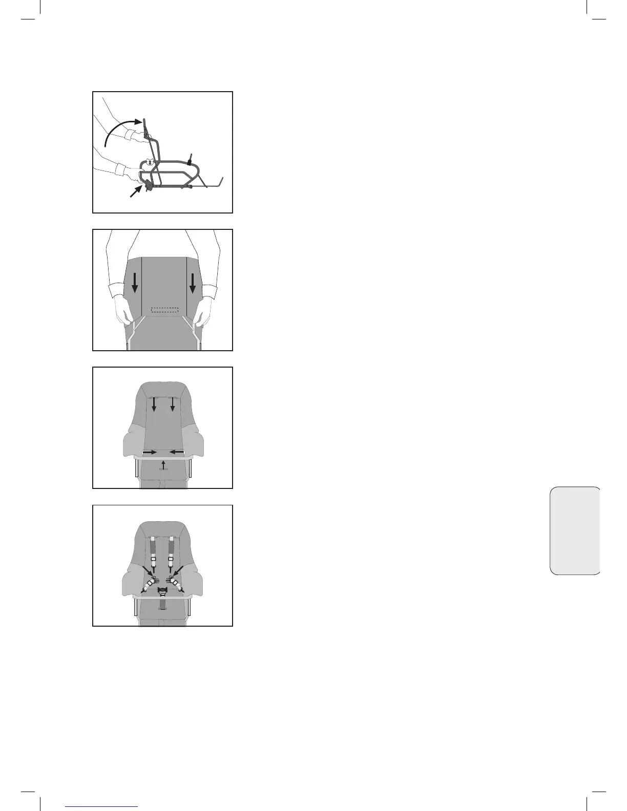 • Schieben Sie die Hüftgurte (5) durch die Löcher im Sitz.