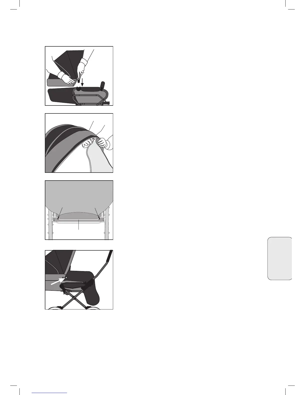 • Sie befestigen den Regenschutz, indem Sie ihn über das Ver-Sie befestigen den Regenschutz, indem Sie ihn über das Ver-