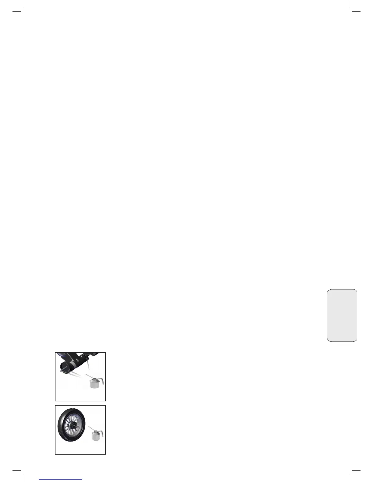 • Wir empfehlen die Schmierung der Radachsen und der Aufhängung alle drei Monate (reinigen Sie die