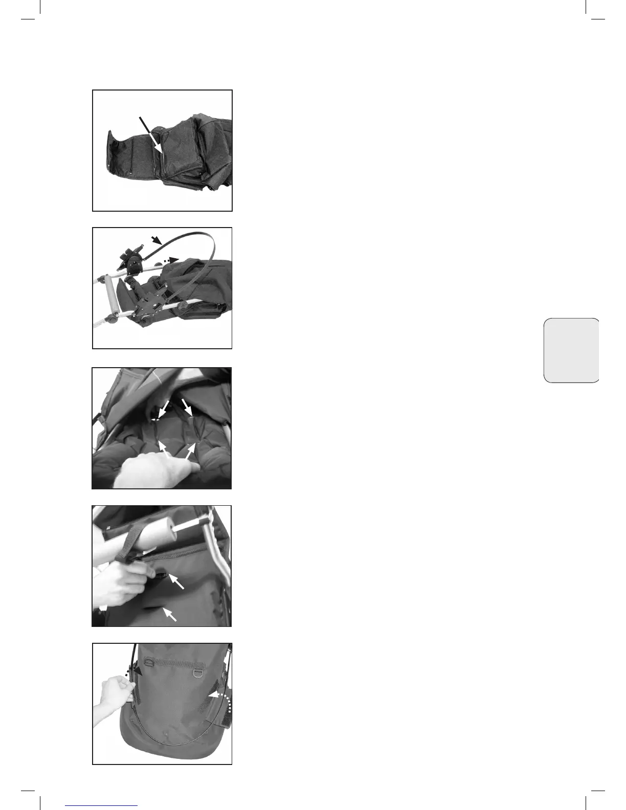 • Ievietojiet kājstarpes siksnu sēdekļa auduma daļas un koka