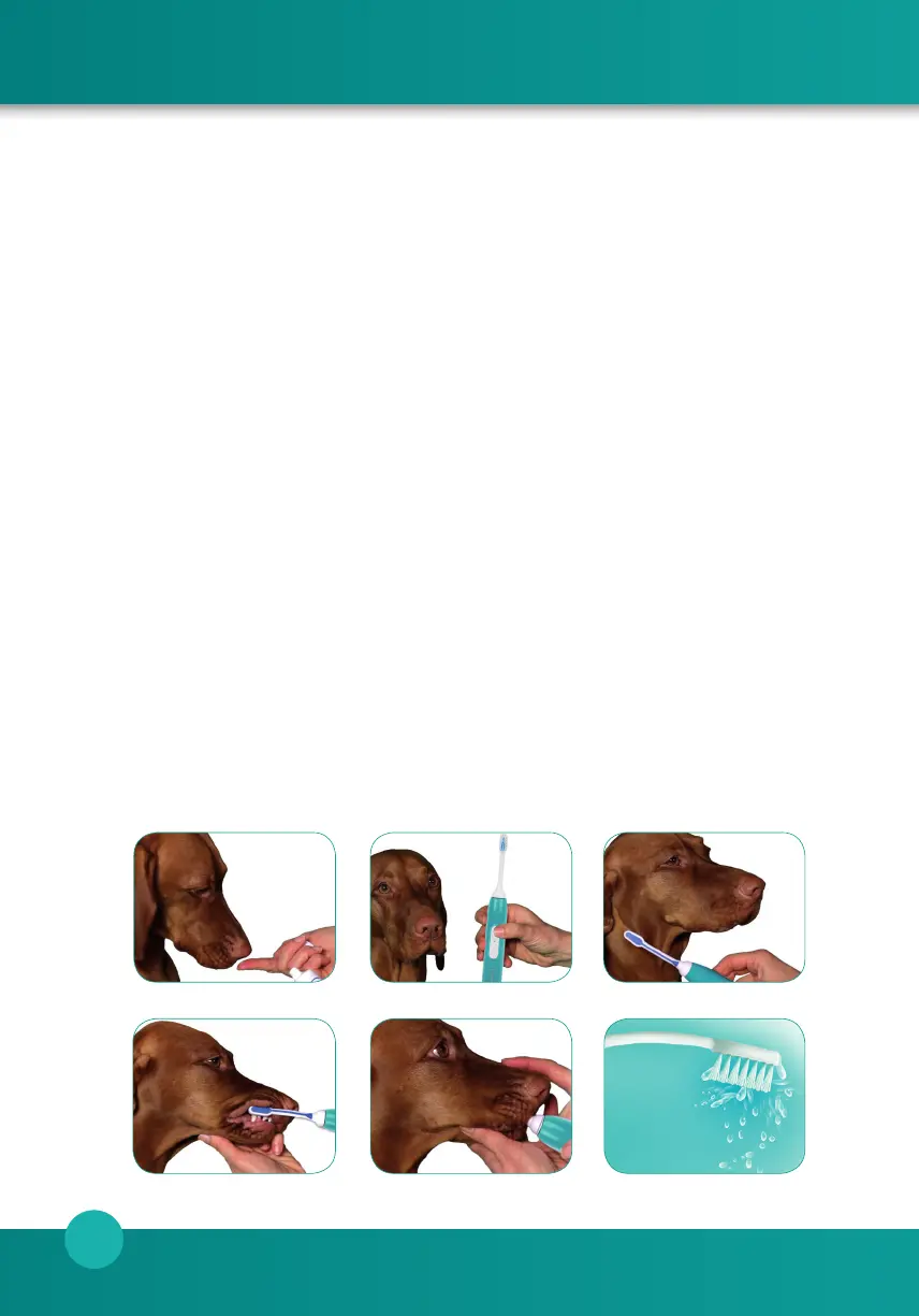 x Vorsichtig die Lefzen hochheben und den Bürstenaufsatz langsam einführen, um Ihr Tier an den