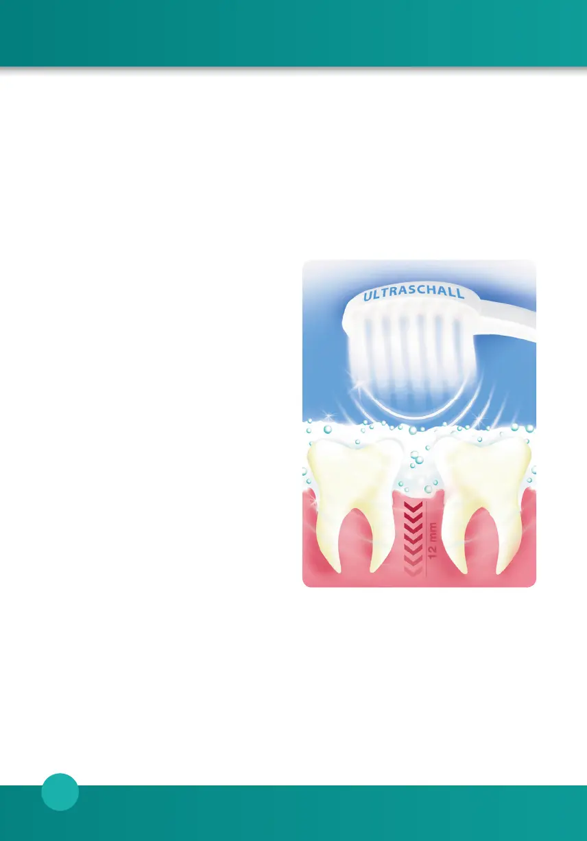 Der Ultra schall entfernt Bakterien auf und bis zu 12mm tief im Zahnfleisch.