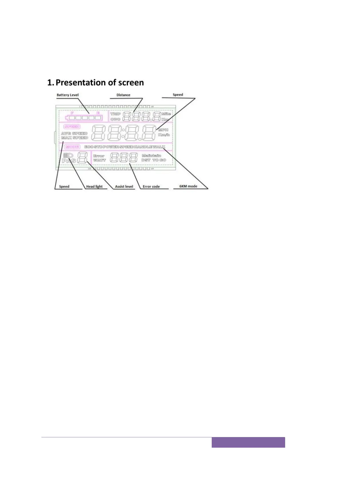 6) Assist level :actual assist level 0~5, 0 –no assist, 1- ECO, 2,3-STD,