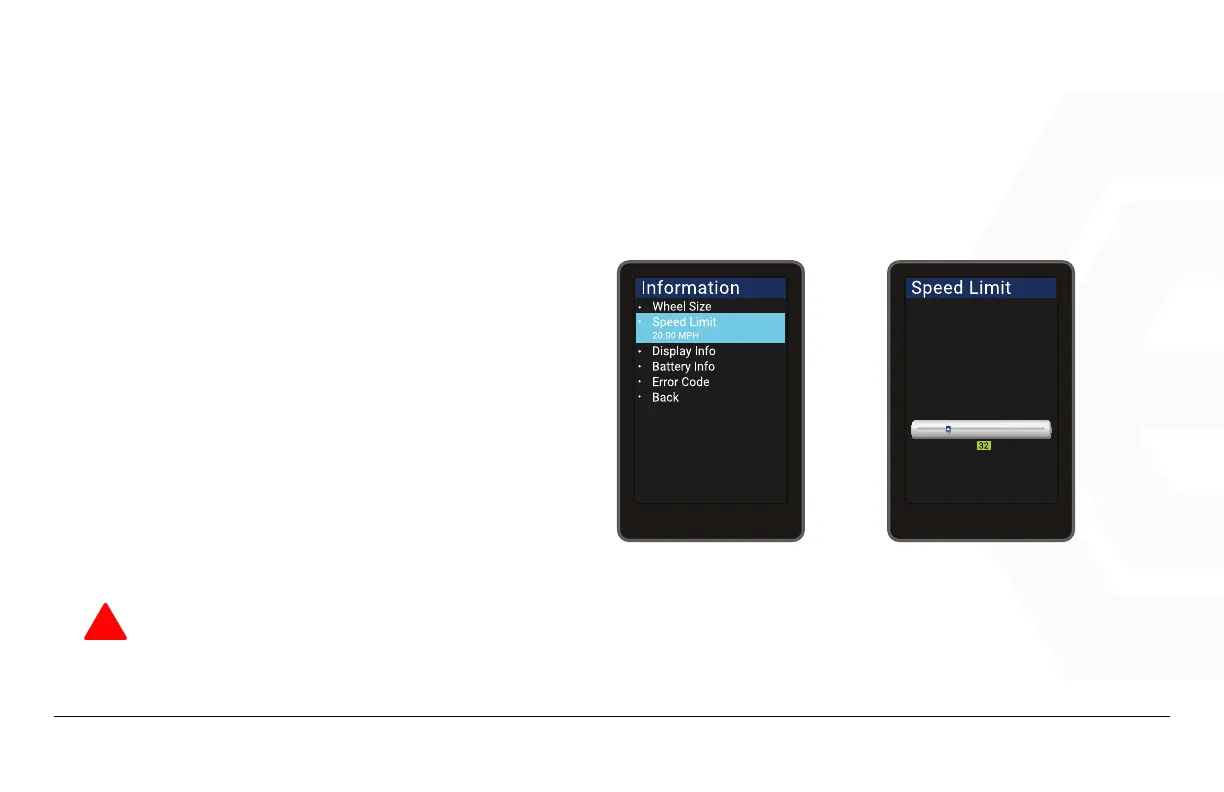 Modifying the speed limit of your bike may be in violation of local laws and result in serious conse-