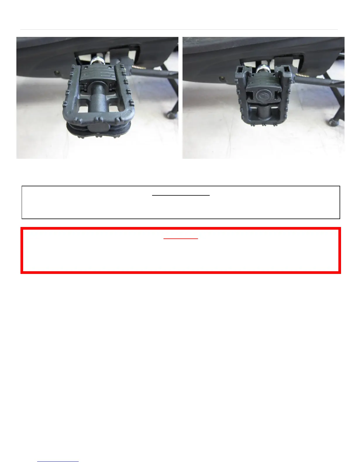 To fold the bike pedals, push the pedal inwards and lift up.(change if necessary