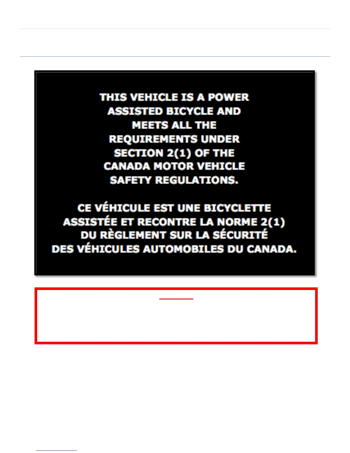 your dealer to put one on. All electric bicycles are required to have this sticker on the bike