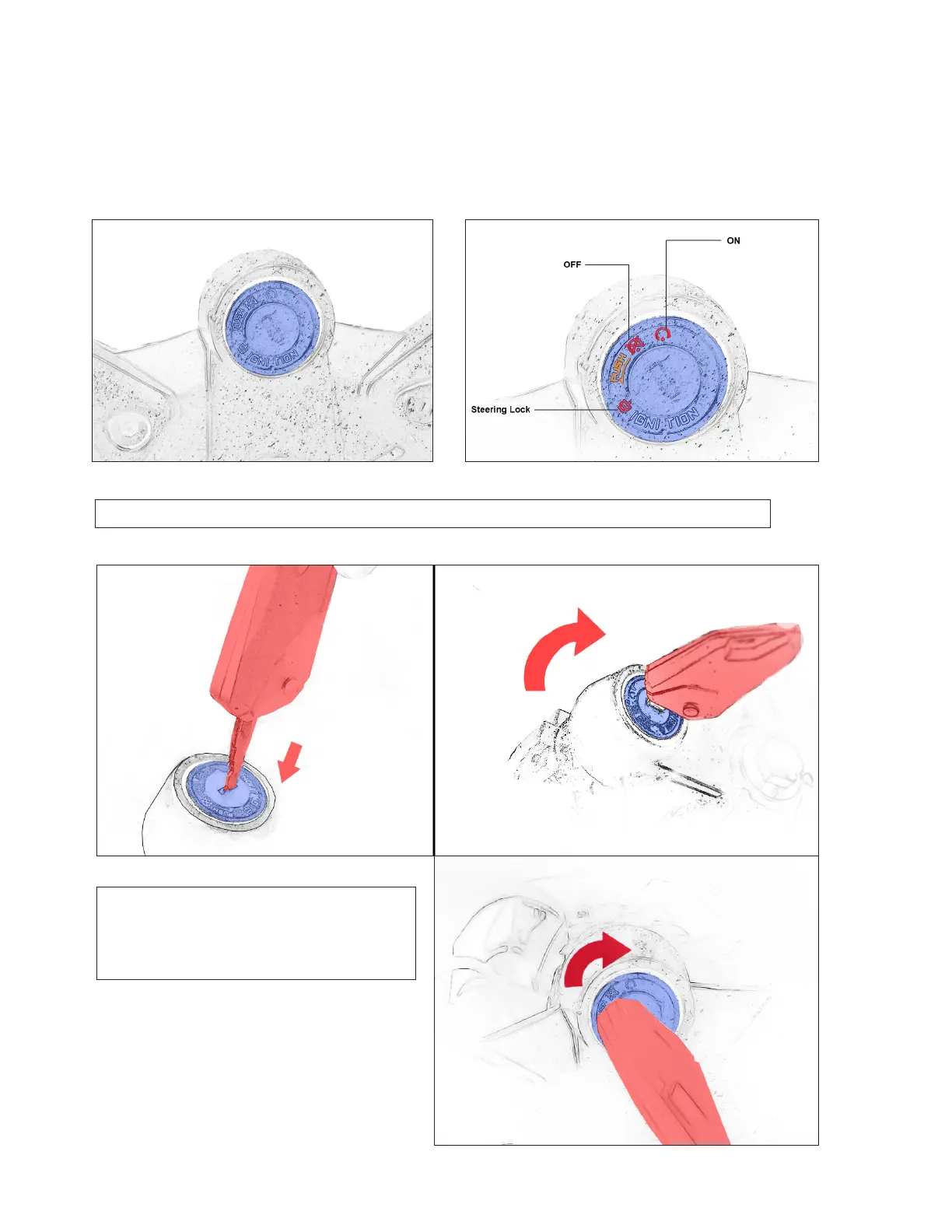 Via the key ignition, you can turn on/o the bike and you can also lock the steering (refer to page