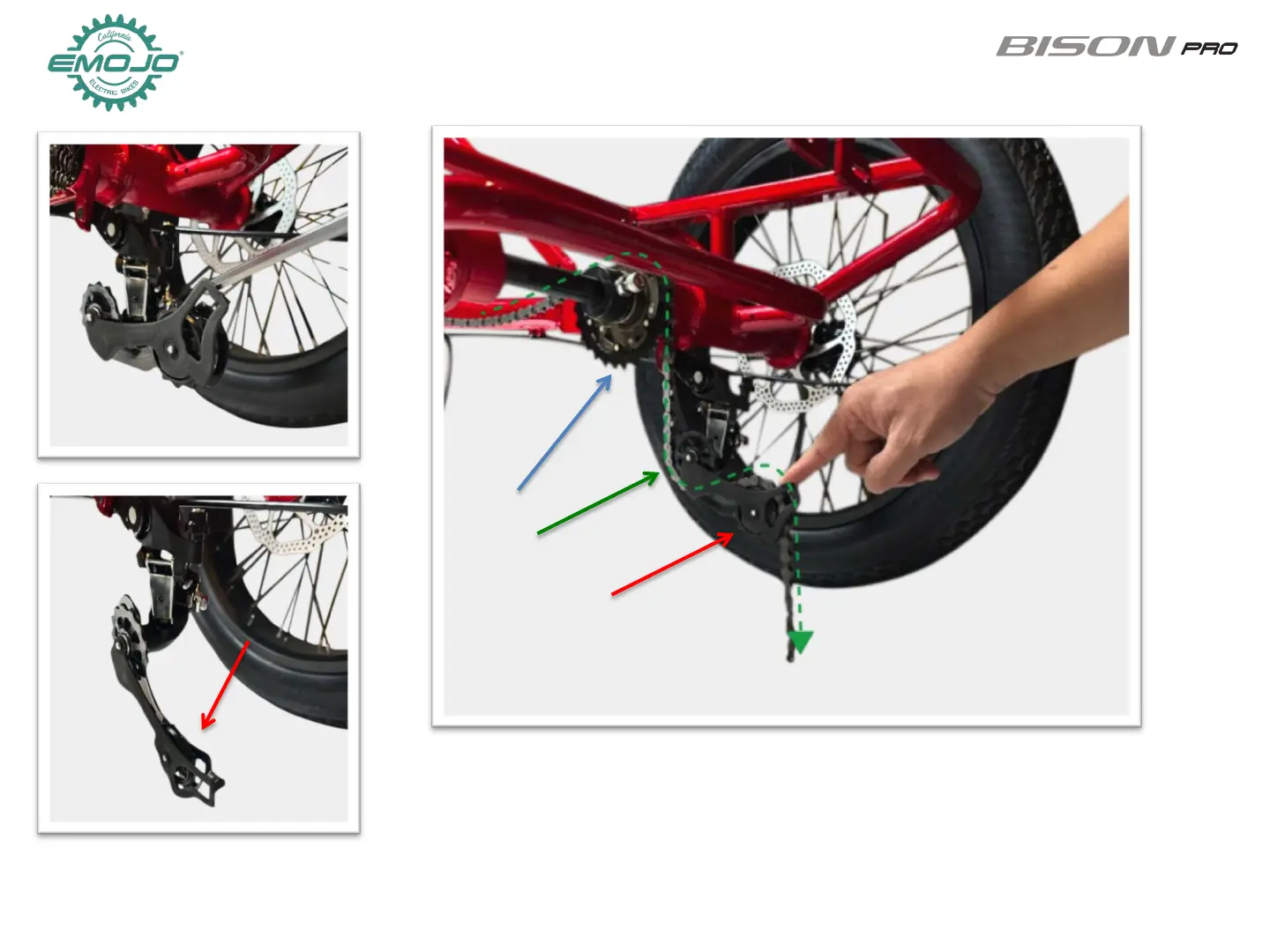 (green arrow) and finally onto the third small sprocket (red arrow)...