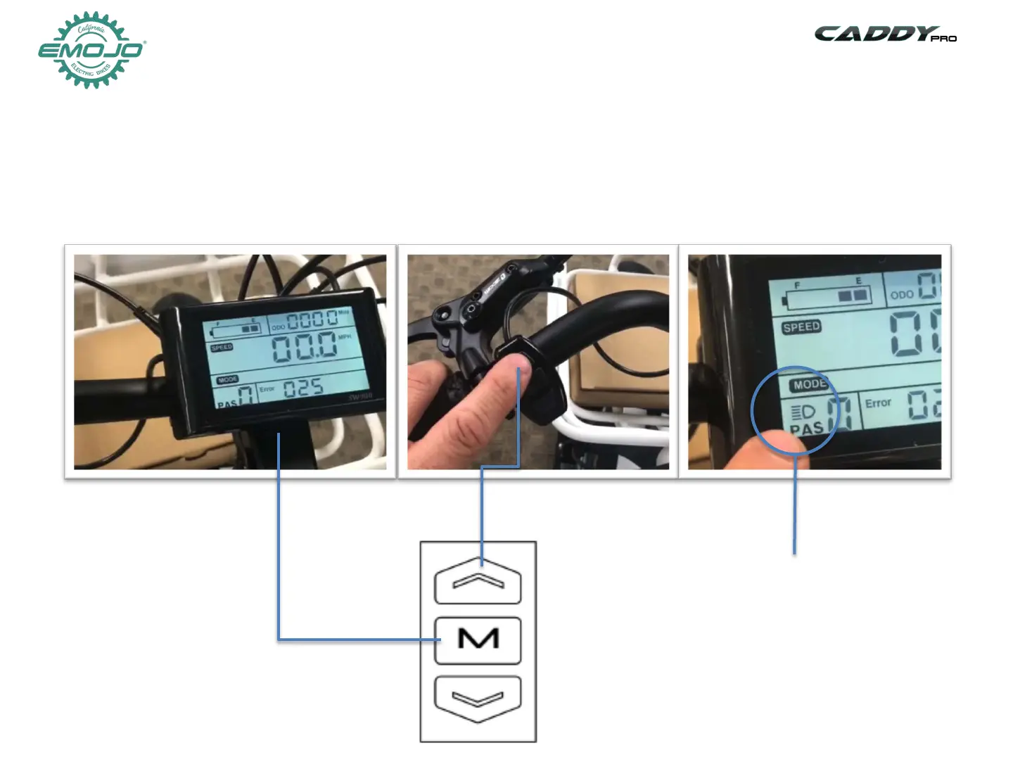 1-Turn on your electric system by pressing and holding the M button for 3 seconds
