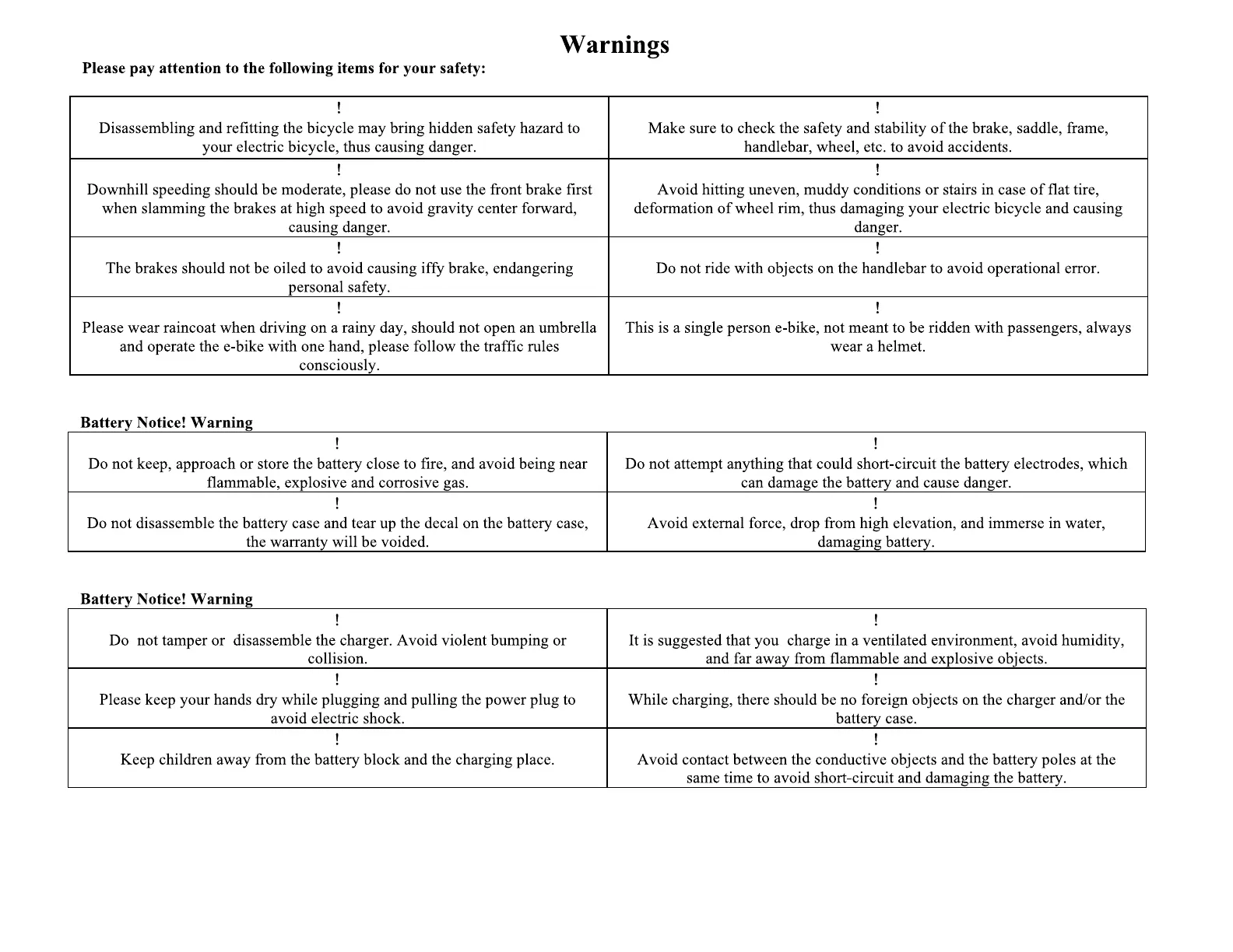 EMOJO Caddy - Warnings