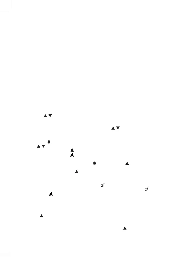 Use the / buttons to set the hour, minute and snooze time delay (5–60 minutes).