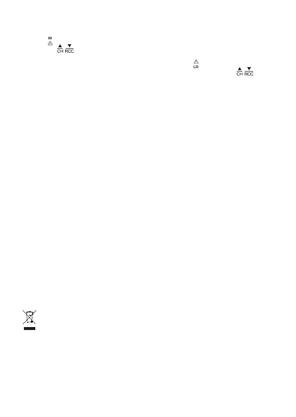 La depășirea limitei termice stabilite va suna de 4× semnalul sonor la ecare minut și valoarea va clipi.