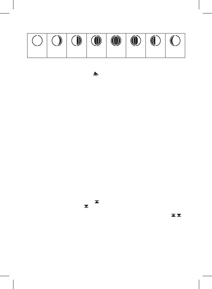 Apăsând lung butonul ALARM și cu butoanele UP/DOWN reglați ora solicitată a alarmei. Între valori