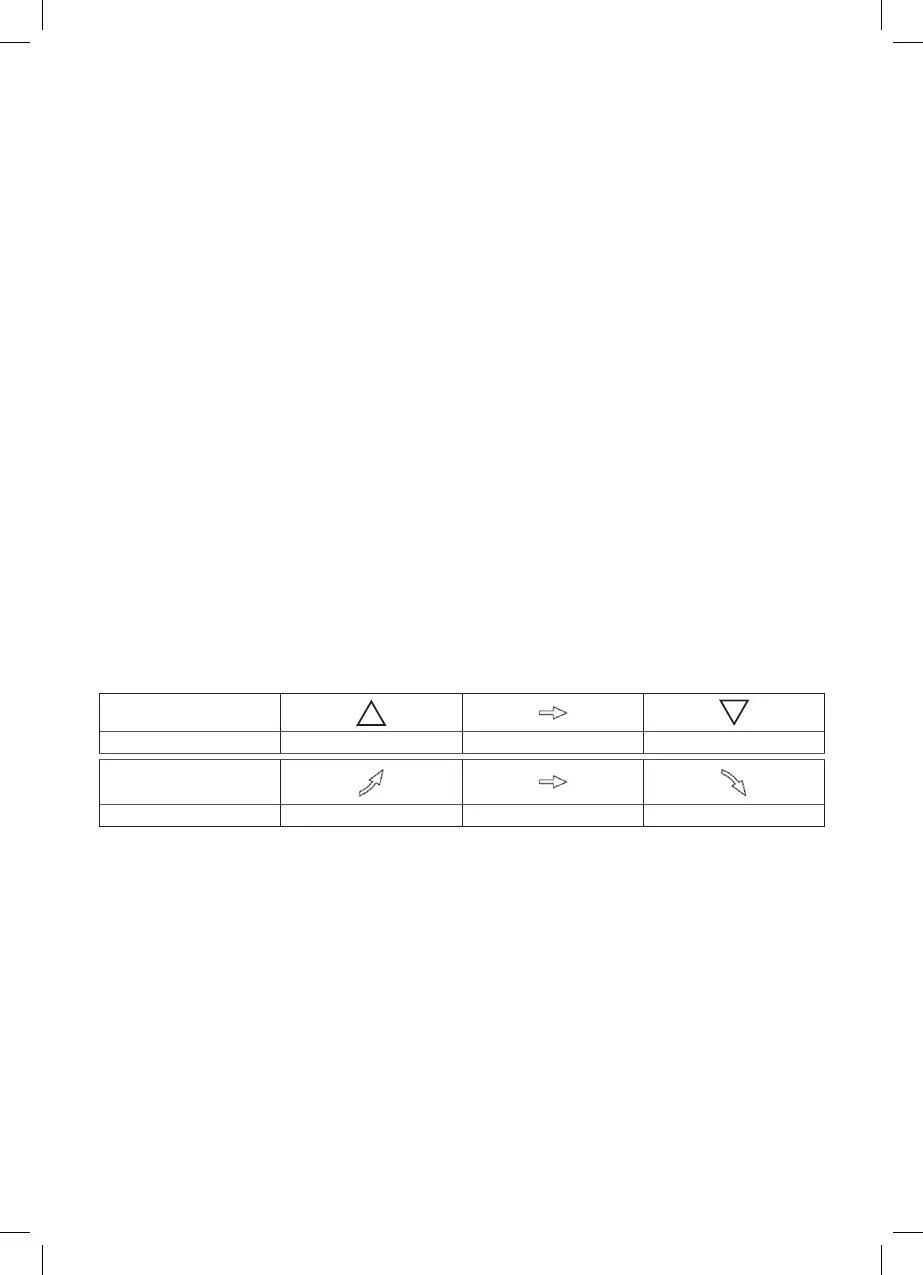Strzałka pokazuje trend zmierzonych wartości wilgotności wewnętrznej/zewnętrznej (nr pola 8, 16) i trendu pogody nr pola 4.