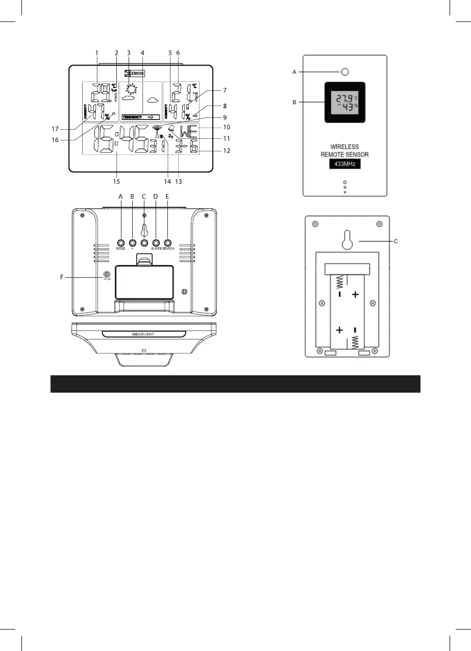 The weather station displays a clock, an alarm clock with the snooze function, weather forecast, accurate data on indoor and