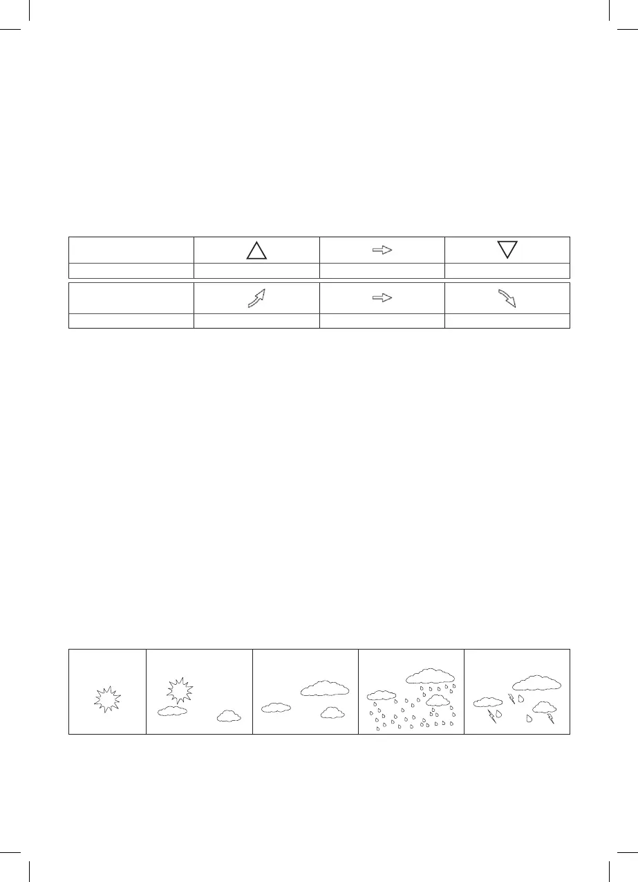 Săgeata indică tendinţa valorilor umidității interioare/exterioare (câmpul nr. 8, 16) și evoluției vremii, câmpul nr. 4.