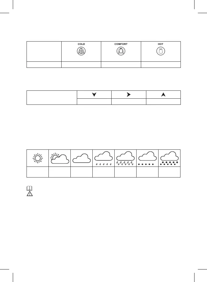 Ikona trendu venkovní teploty a vlhkosti se zobrazuje v poli č. 8 a 17.