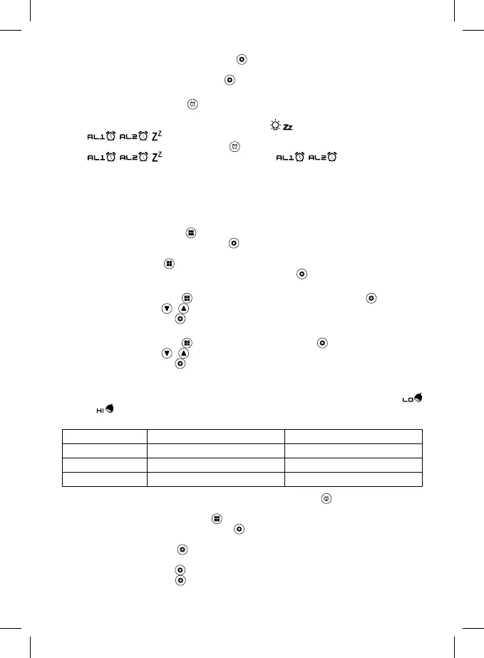 Поступово натискаючи на кнопку активуйте будильник 1 (AL1); будильник 2 (AL2); або обидва