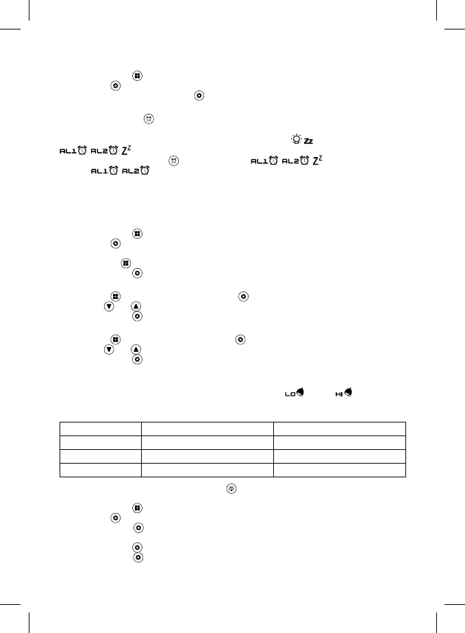 button for 3 seconds and use the arrows to set the alarm hour and minute.
